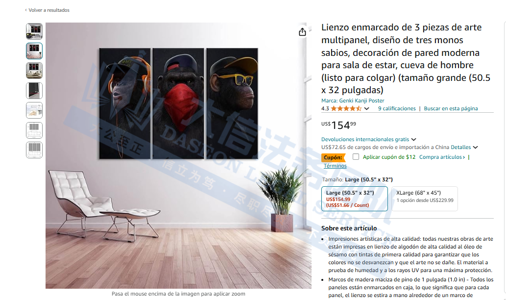 原告Juliano Dos Santos De Araujo是一名数字艺术家和设计师,他创作了灵感来自于日常生活和嘻哈文化的当代作品。他拥有平面设计学士学位,他在大学期间就对3D艺术产生了热情。他的愿望是,他的作品能继续得到有信誉的公司和画廊的认可和认可。Three Wise Monkeys寓意为不见恶事,不闻恶词,不言恶言这三个寓意共同构成了版权作品的核心价值,表达希望通过自我控制和约束,保持内心的善良和纯净。