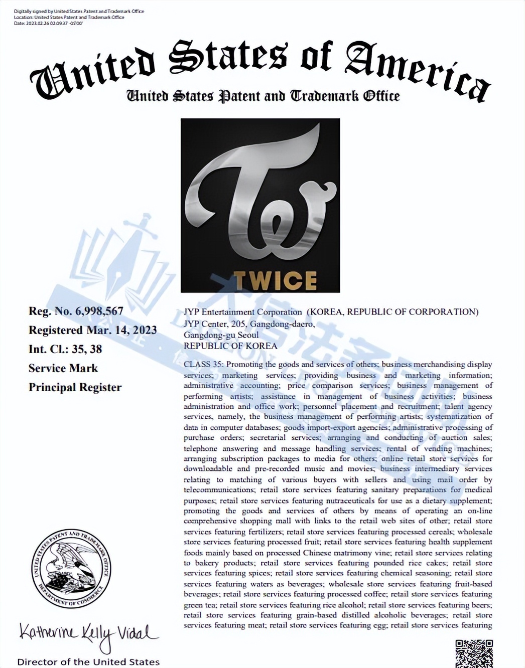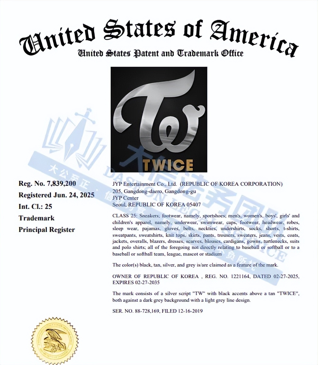 此案为商标维权,涉及3个TWICE图文商标,商标人是JYP,其商标的产品服务范围分别服饰、鞋类、商业服务等,以下是涉及商标的具体信息,除此之外,官网上的其他作品未经授权不得擅自使用,侵权风险极高,跨境卖家尽快检索下架,避免TRO侵权风险!