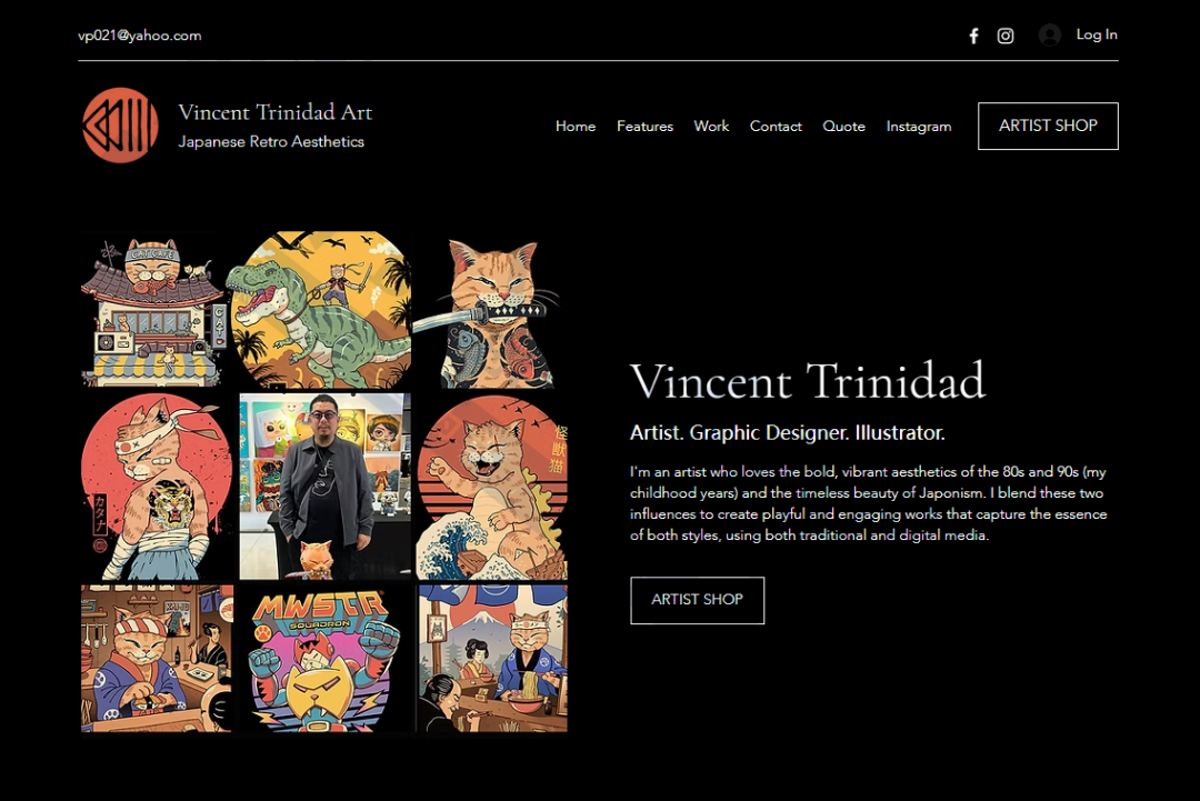 原告是来自菲律宾的艺术家、平面设计师和插画师,他的创作核心是融合两种美学:西方复古:他深深着迷于20世纪80年代和90年代大胆、充满活力的美学风格,例如动感的Outrun风和迷幻的Vaporwave风,日本主义:他的作品中充满了日本文化的元素,包括浮世绘的细腻笔触、可爱的动物、拉面碗、富士山等经典意象,他的作品呈现出一种俏皮、引人入胜且极具辨识度的日式复古波普风格,被广泛应用于T恤、贴纸、画布、墙壁艺术等多种产品上。