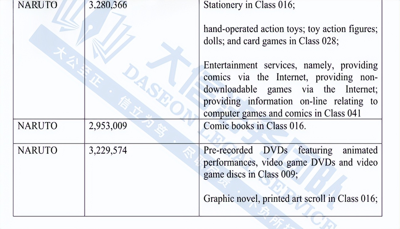 此案为商标+版权维权,涉及一个商标,商标词:NARUTO,以及视频中的符号,以下是涉及商标的具体信息,未经授权不得擅自使用,侵权风险极高,跨境卖家尽快检索下架,避免TRO侵权风险!