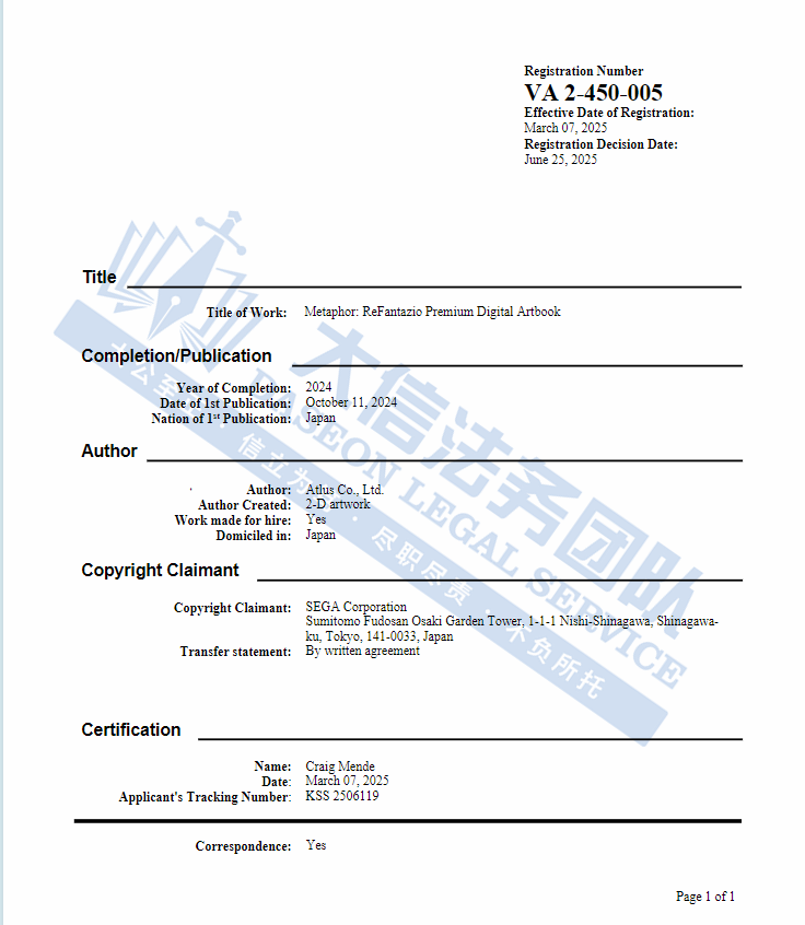 SEGA CORPORATION是全球知名跨国电子游戏、娱乐及动画企业,曾涉足家用电脑与游戏机制造,拥有《刺猬索尼克》《初音未来:Colorful Stage!》等经典游戏 IP,在全球游戏行业具备极高知名度与影响力。其发行的《暗喻幻想:ReFantazio》于 2024 年 10 月 11 日推出,是一款多平台角色扮演游戏,讲述少年在国王遇刺后成为新王候选人、卷入王位竞选的故事。