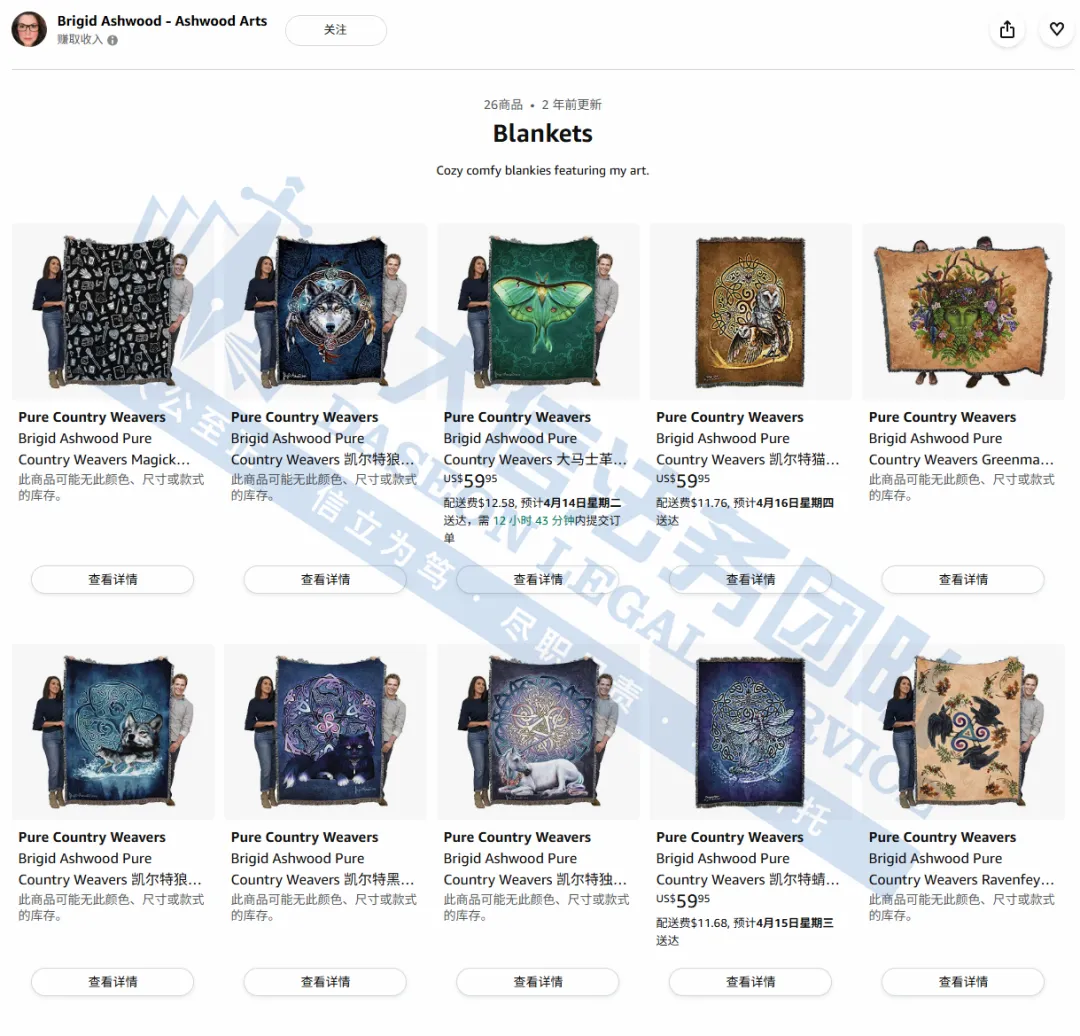 此案为版权维权,涉及6个插画作品,版权号:VA 2-343-732、VA 2-330-727、VA 2-330-370、VA 2-330-544、VA 2-330-695、VA 2-332-942。以下是涉及版权的具体信息,未经授权不得擅自使用,侵权风险极高,跨境卖家尽快检索下架,避免TRO侵权风险!