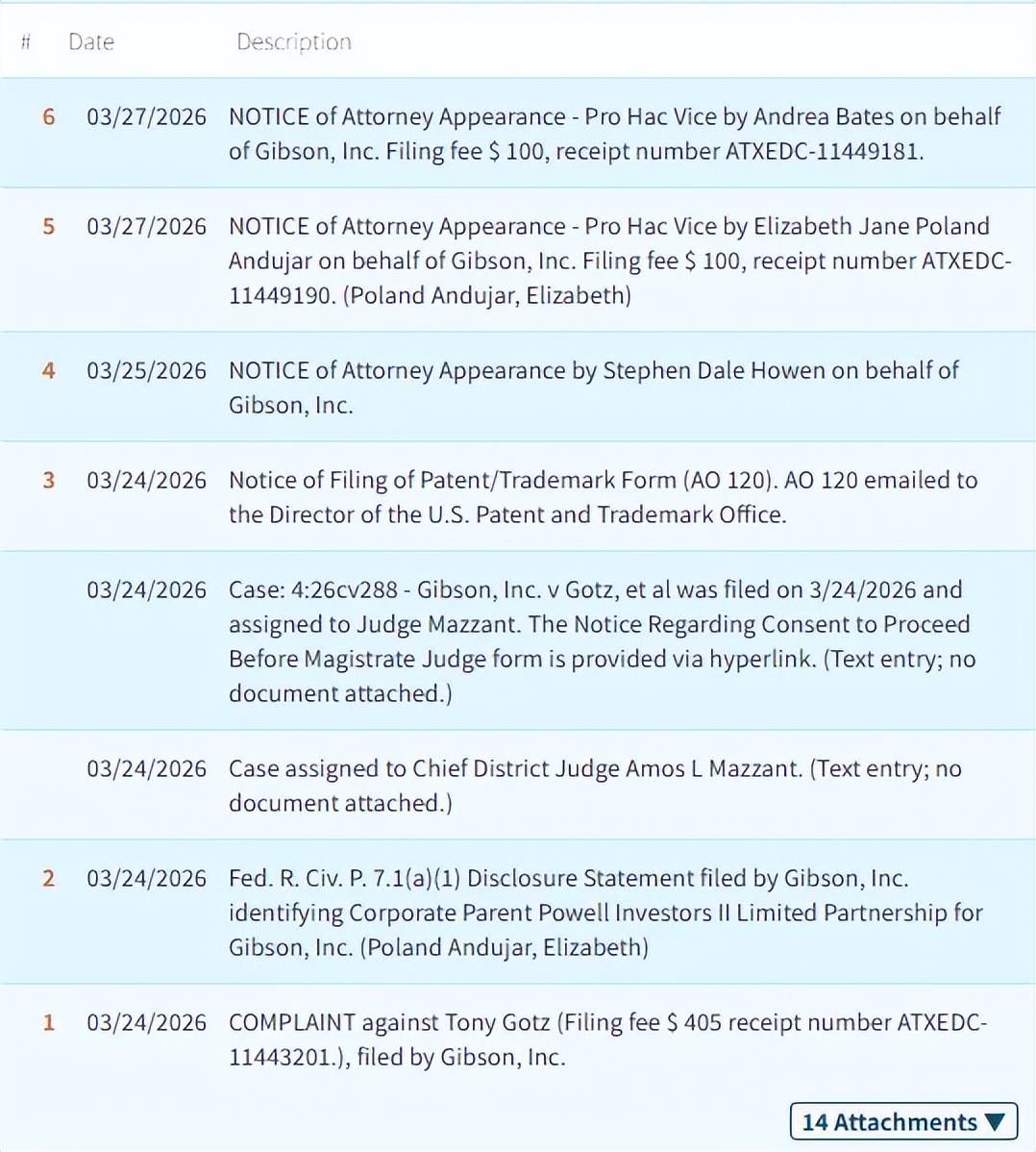 原告:Gibson, Inc