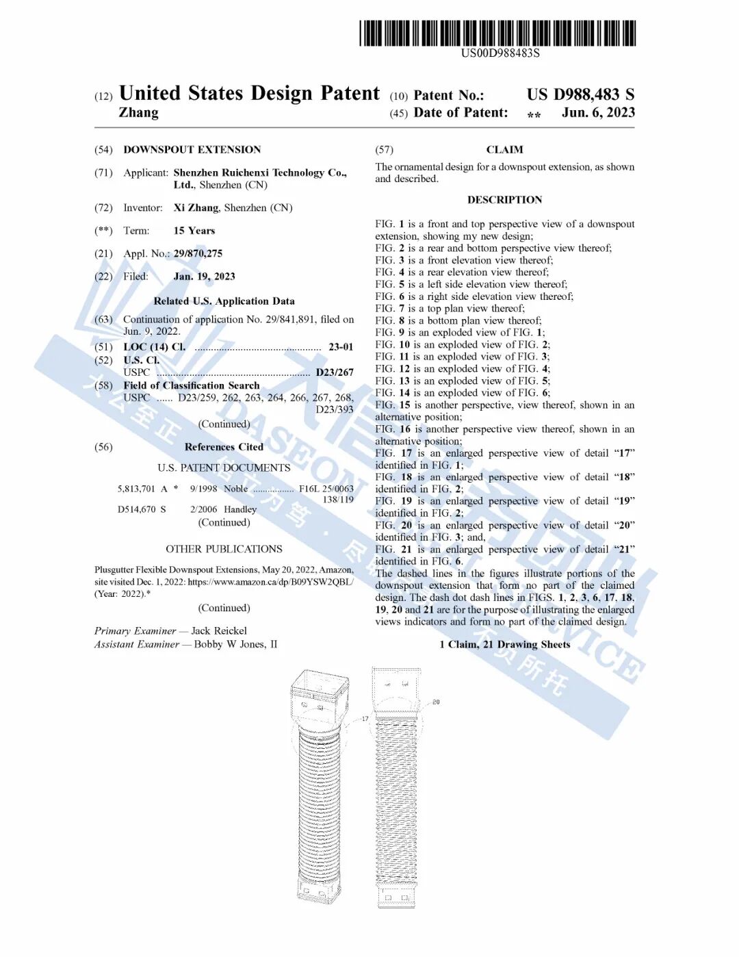 此案为专利维权,涉及8张设计专利作品,专利号:US D1072210S、US D988483S及USD988482 S等。以下是涉及专利的具体信息,未经授权不得擅自使用,侵权风险极高,跨境卖家尽快检索下架,避免TRO侵权风险!