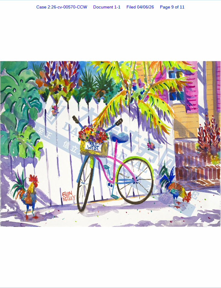 本案为版权侵权,涉及原告的5张作品版权,版权号:VA 2-458-625、VA 2-458-621、VA 2-458-623等。以下是涉及版权的具体信息,未经授权不得擅自使用,侵权风险极高,跨境卖家尽快检索下架,避免TRO侵权风险!