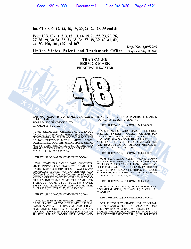 HMS HOLDINGS, LLC(亨德里克赛车集团)由 Rick Hendrick 于 1984 年创立,是NASCAR 杯系列历史上最成功的车队之一。长期征战全美顶级赛车赛事,手握15 次杯系列总冠军、320 场积分赛胜利等多项历史纪录,凭借卓越战绩积累了极高的行业知名度与品牌价值,是纳斯卡赛车领域的标杆级品牌。