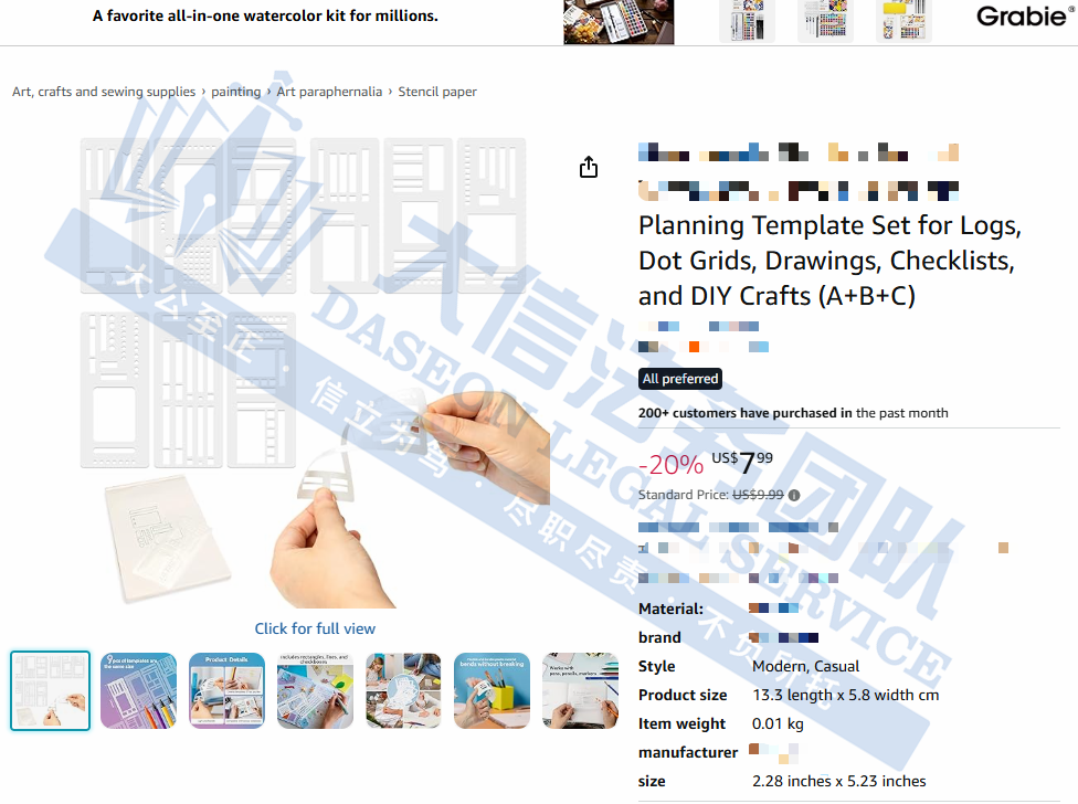 本案为版权侵权,涉及原告手账模板尺版权,版权号:VA 0002463960。以下是涉及版权的具体信息,未经授权不得擅自使用,侵权风险极高,跨境卖家尽快检索下架,避免TRO侵权风险!