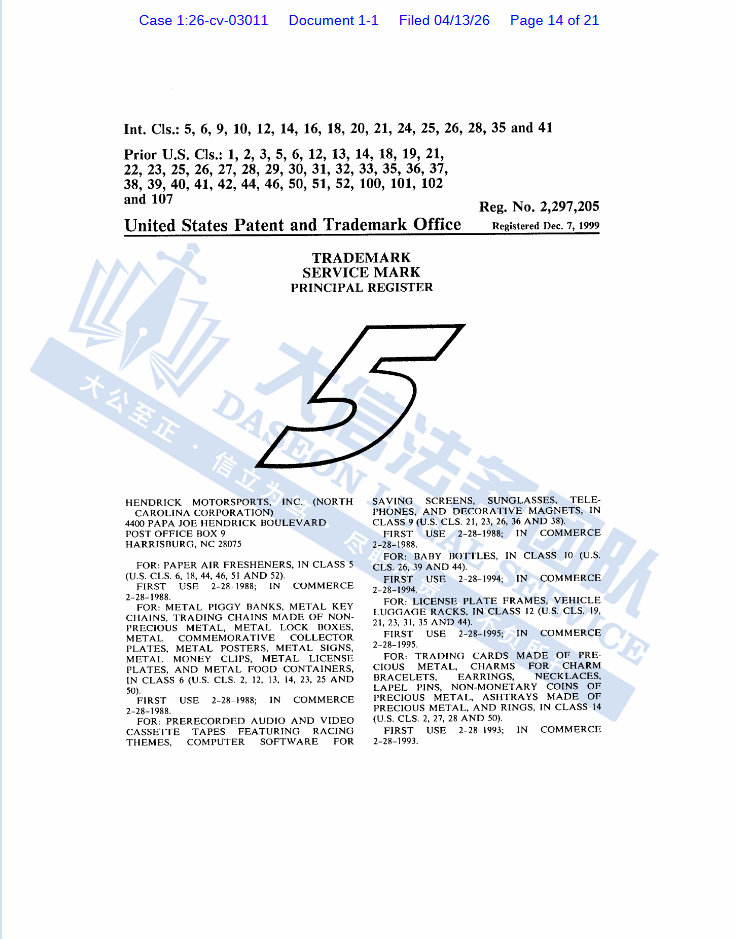 本案为商标侵权,涉及原告6项商标,商标号:4178998、3438084等。以下是涉及商标的具体信息,未经授权不得擅自使用,侵权风险极高,跨境卖家尽快检索下架,避免TRO侵权风险!