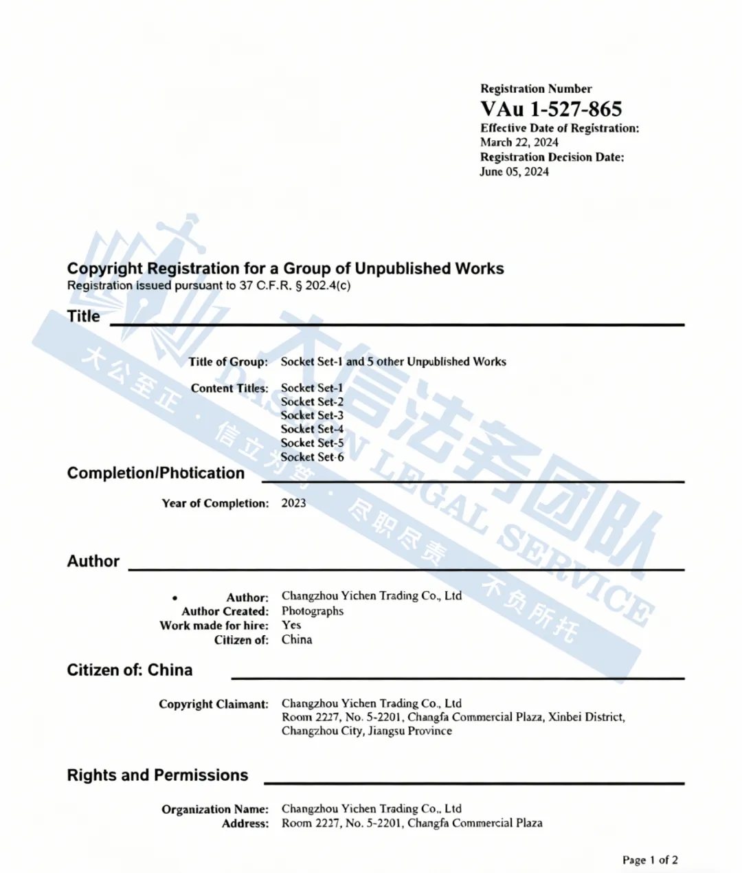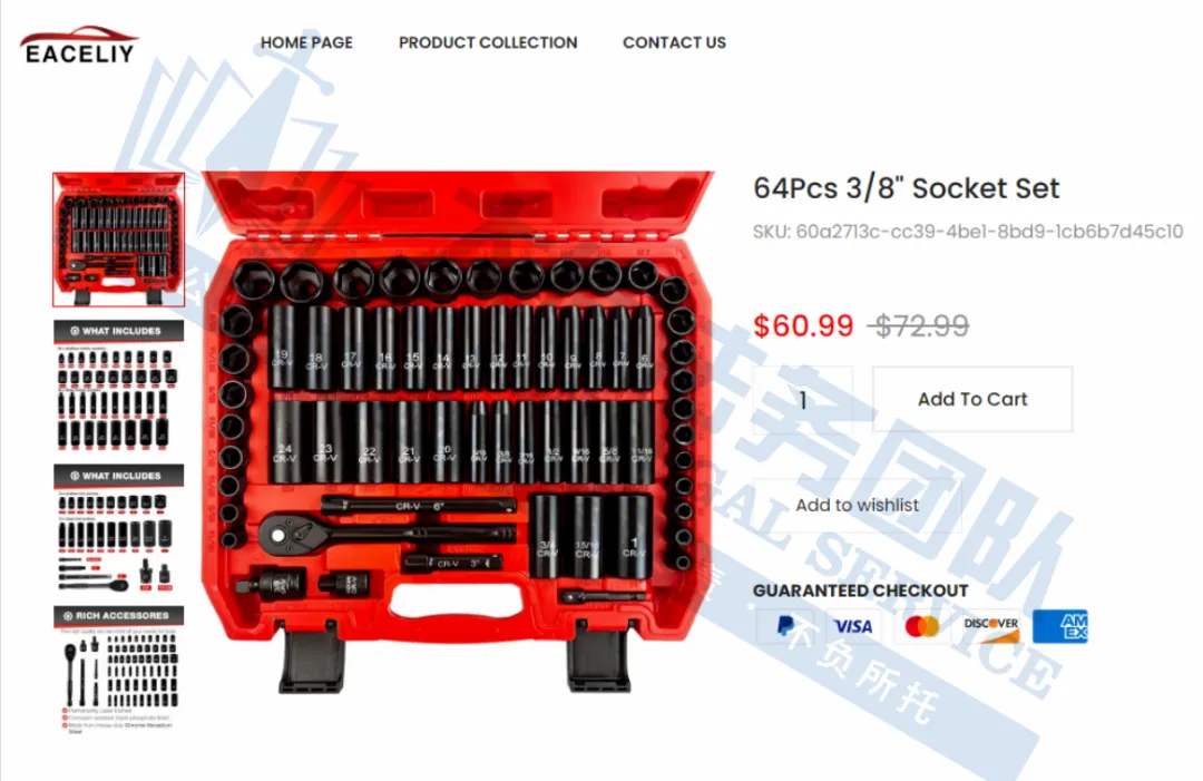 本案为版权侵权,涉及原告一个于2024年3月在美国注册的工具套装展示图,版权号:VAu 1-527-865。本案共有7家店铺被波及,以下是涉及版权的具体信息,未经授权不得擅自使用,侵权风险极高,跨境卖家尽快检索下架,避免TRO侵权风险!