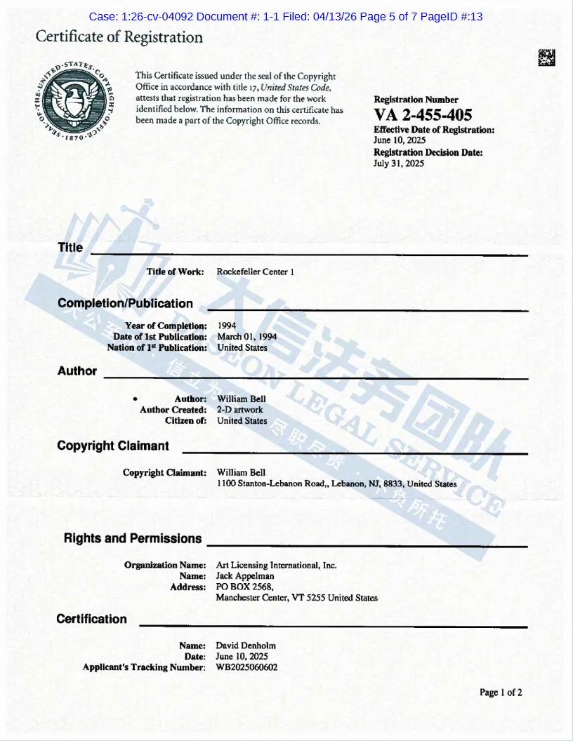 本案为版权侵权,涉及原告1幅版权作品,版权号:VA 2468667。本案共有30家店铺被波及,以下是涉及版权的具体信息,未经授权不得擅自使用,侵权风险极高,跨境卖家尽快检索下架,避免TRO侵权风险!