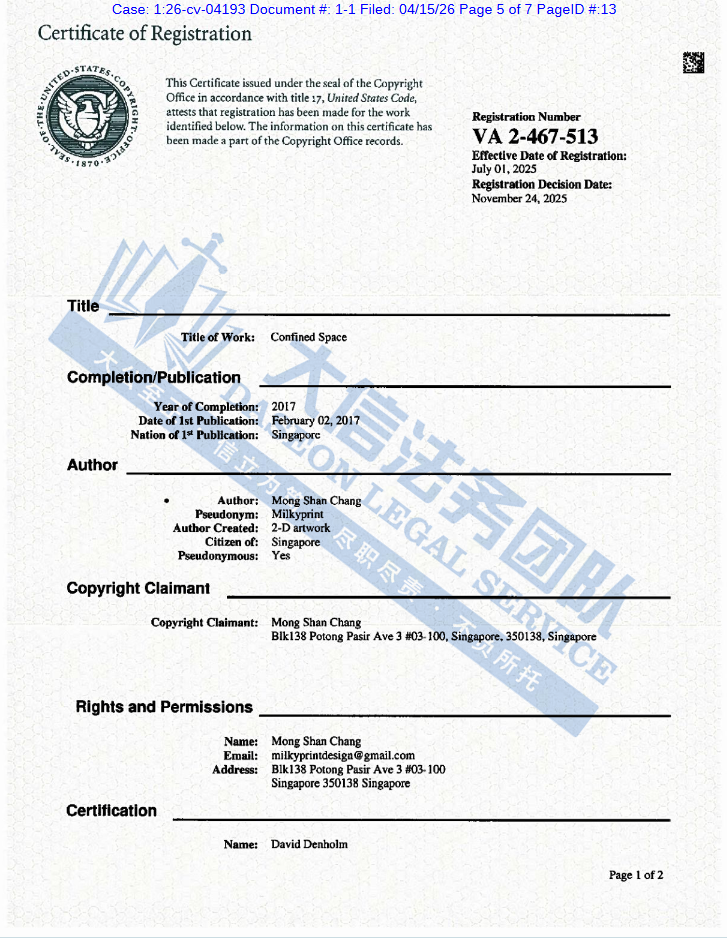 本案为版权侵权,涉及原告2幅插画版权,目前有64家店铺被波及,版权号:VA0002467507和VA0002467513。以下是涉及版权的具体信息,未经授权不得擅自使用,侵权风险极高,跨境卖家尽快检索下架,避免TRO侵权风险!