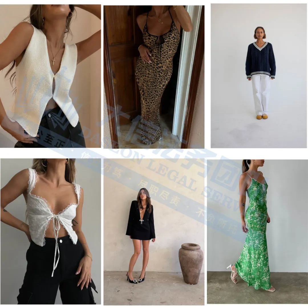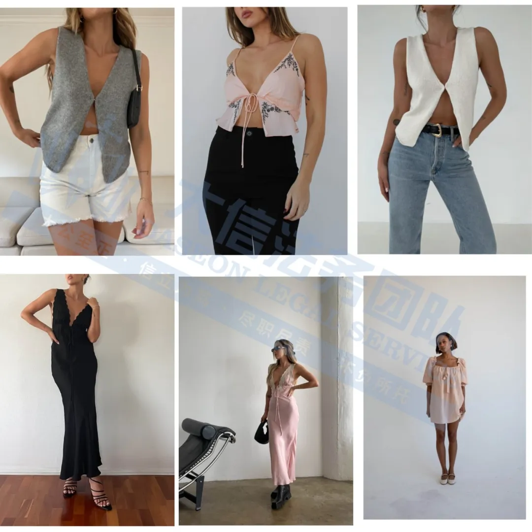原告是一个源自纽约的女装品牌,由女性创立并完全由女性团队运营。该品牌以打造基础百搭款为核心,融合时尚潮流与经典设计,通过历史灵感诠释未来穿着可能,涵盖基础款 T 恤、直筒牛仔裤、针织开衫等核心单品的版型设计与图案元素,如高腰直筒裤的腰头剪裁、圆领 T 恤的领口弧度等。
