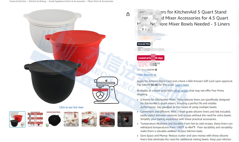 原告是来自美国一家专注于从事各类家居用品及家用产品的制造与销售的公司,旗下有一款明星产品,专为KitchenAid立式搅拌机打造的实用配件,它采用食品级硅胶材质,安全无毒,与食材接触令人放心,且环保无污染,契合健康生活理念,有效提升了搅拌效率,简化了清洁流程,是KitchenAid立式搅拌机用户的理想之选。