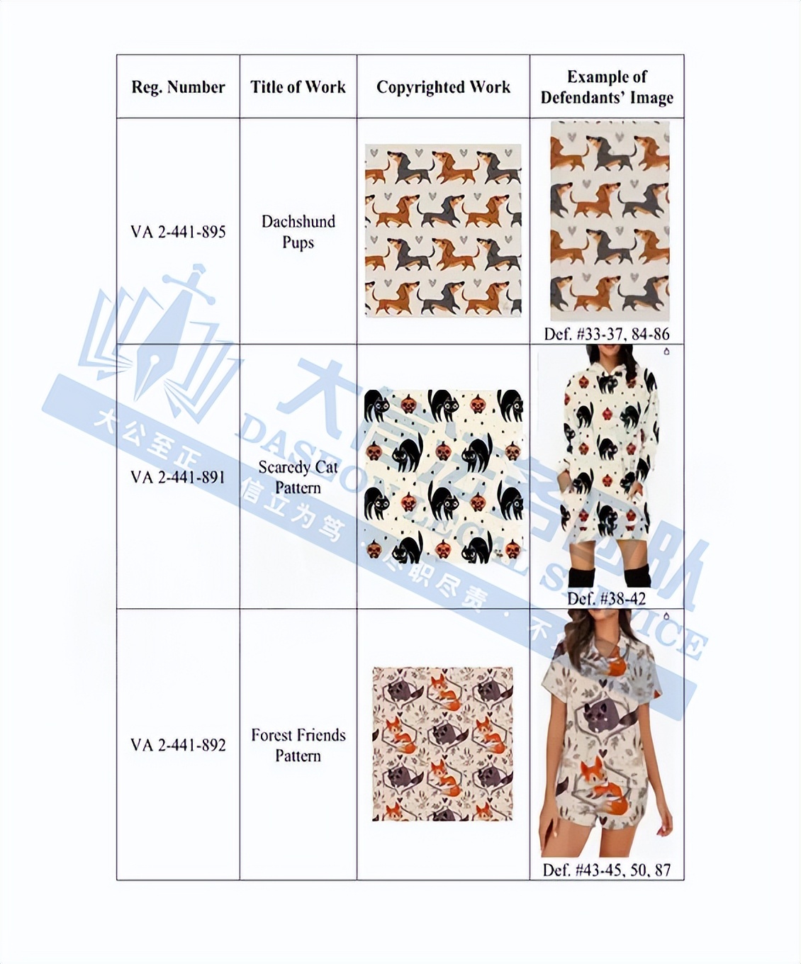 此案为版权维权,涉及9张版权作品,除此之外,官网的其他作品未经授权均不得擅自使用,以下是涉及版权具体信息,侵权风险极高,跨境卖家尽快检索下架,避免造成更大的TRO侵权损失!