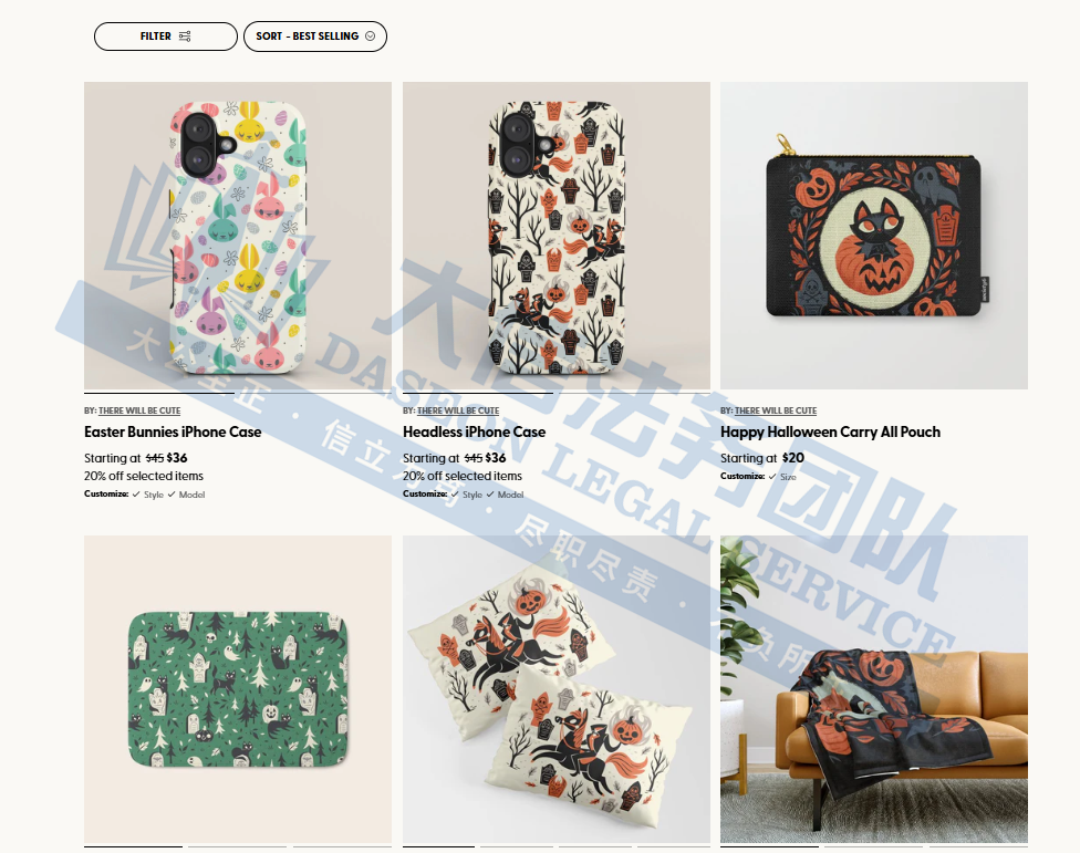 此案为版权维权,目前已有137家店铺被冻,涉及7张版权作品,除此之外,官网的其他作品未经授权均不得擅自使用,以下是涉及版权具体信息,侵权风险极高,跨境卖家尽快检索下架,避免造成更大的TRO侵权损失!
