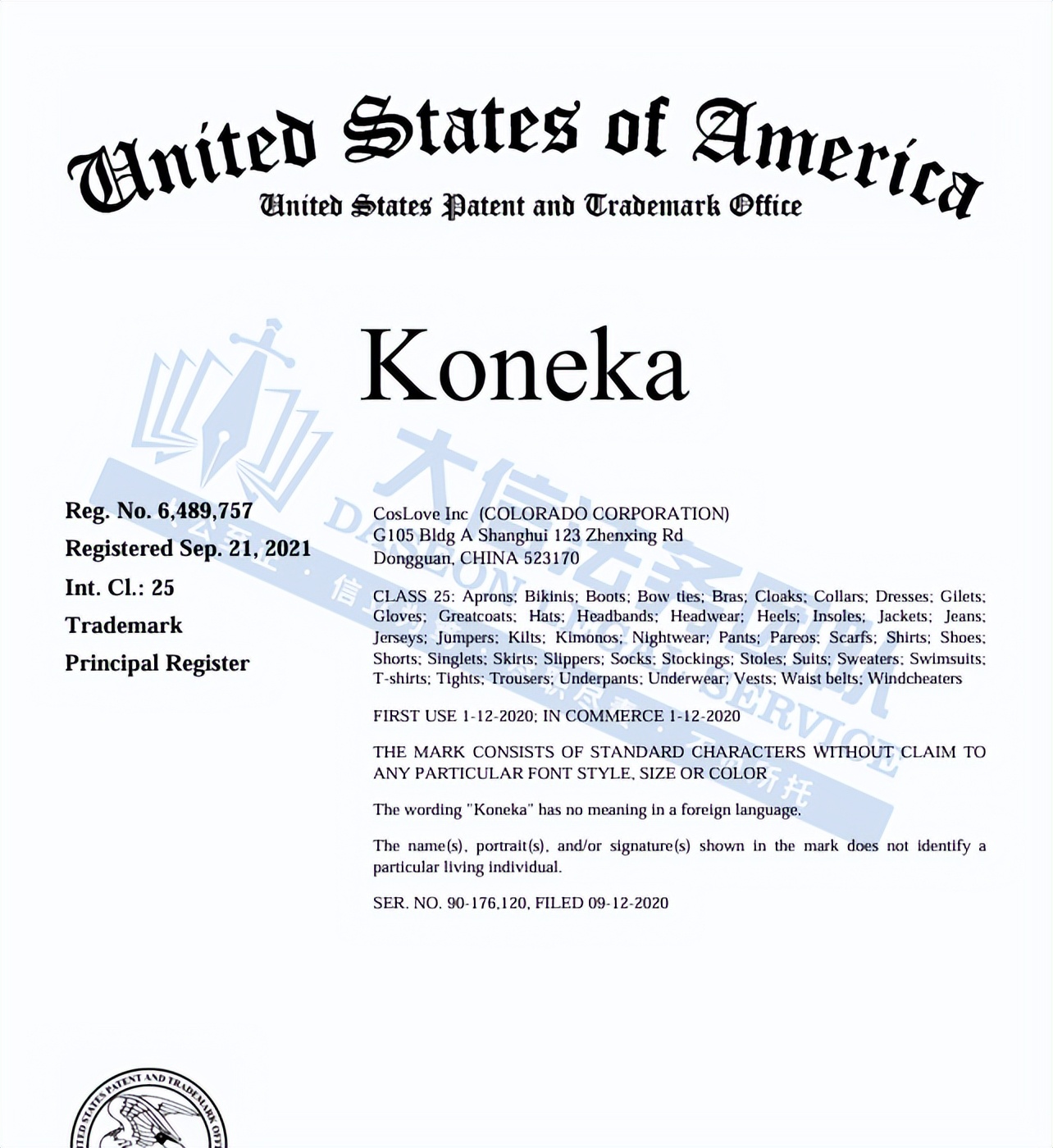 此案为商标维权,目前已有131家店铺被波及,涉及原告1个商标词:KONEKA,商标号:6489757,值得注意的是,原告在美国注册了Koneka、Kaska、Kasma、Kamela等14个商标,未经授权均不可擅自使用,以下是涉及商标的具体信息,未经授权不得擅自使用,侵权风险极高,跨境卖家尽快检索下架,避免TRO侵权风险!