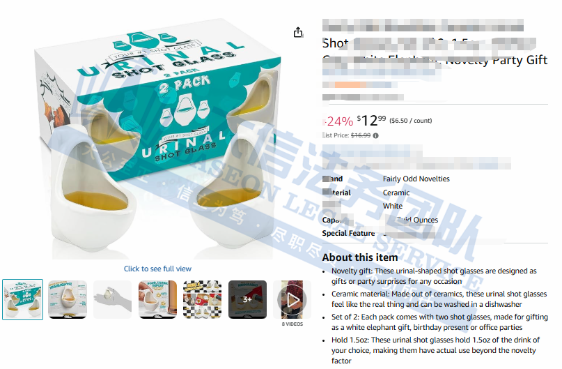 “小便池酒杯”(Urinal Shot Glass),是美国创意公司 FAIRLY ODD TREASURES, LLC 推出的一款恶搞产品。它将常见的小便池造型微缩成酒杯尺寸,凭借其大胆的幽默感,成为了派对和送礼的热门选择,产品采用陶瓷材质精心打造,在外观上高度还原了真实小便池的细节,具有极强的视觉冲击力和话题性,虽然外观搞怪,但它是一个完全合格的实用酒杯。不仅适合日常使用,而且可安全放入洗碗机清洁,非常方便。