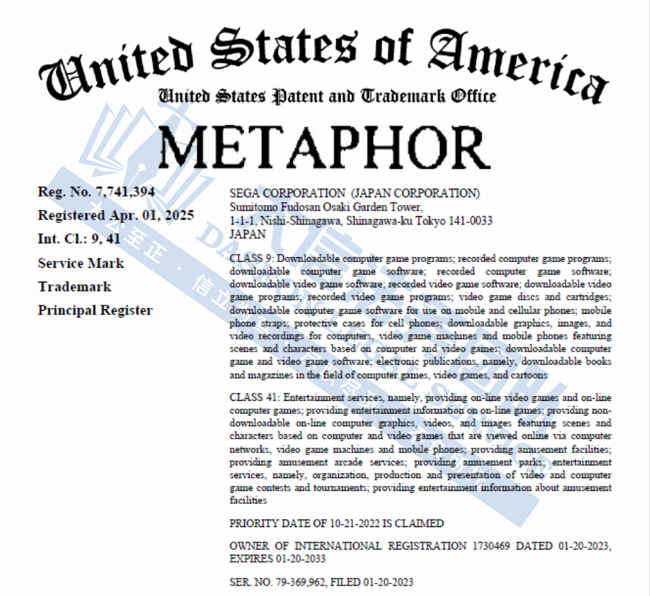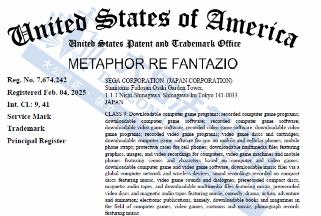 SEGA CORPORATION是全球知名跨国电子游戏、娱乐及动画企业,曾涉足家用电脑与游戏机制造,拥有《刺猬索尼克》《初音未来:Colorful Stage!》等经典游戏 IP,在全球游戏行业具备极高知名度与影响力。其发行的《暗喻幻想:ReFantazio》于 2024 年 10 月 11 日推出,是一款多平台角色扮演游戏,讲述少年在国王遇刺后成为新王候选人、卷入王位竞选的故事。