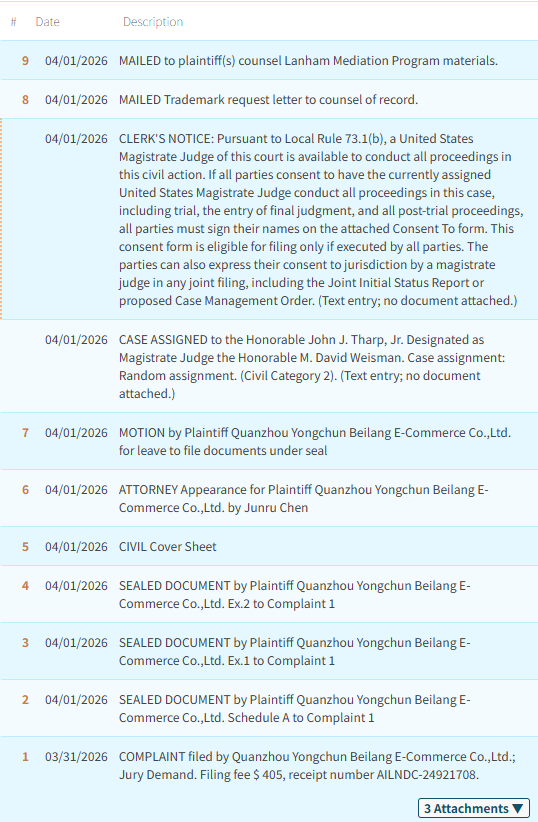 原告:Quanzhou Yongchun Beilang E-Commerce Co.,Ltd