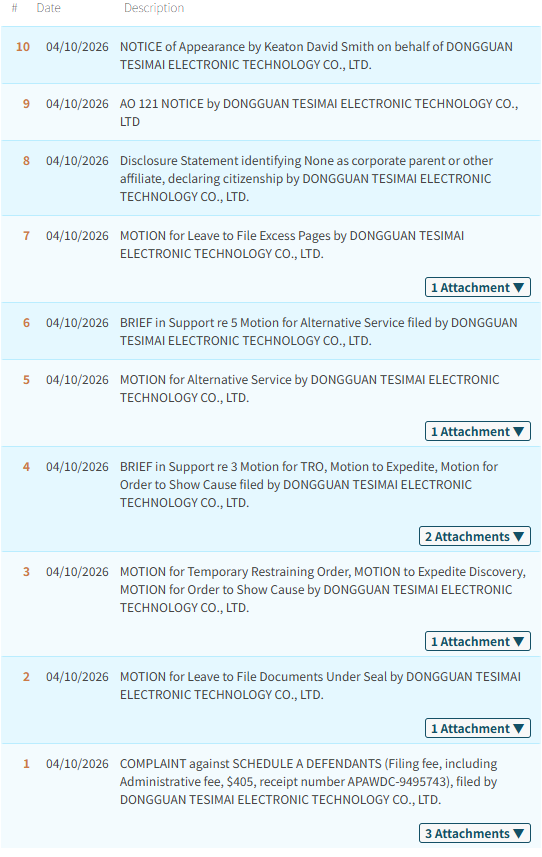 原告:Dongguan Tesimai Electronic Technology Co., Ltd