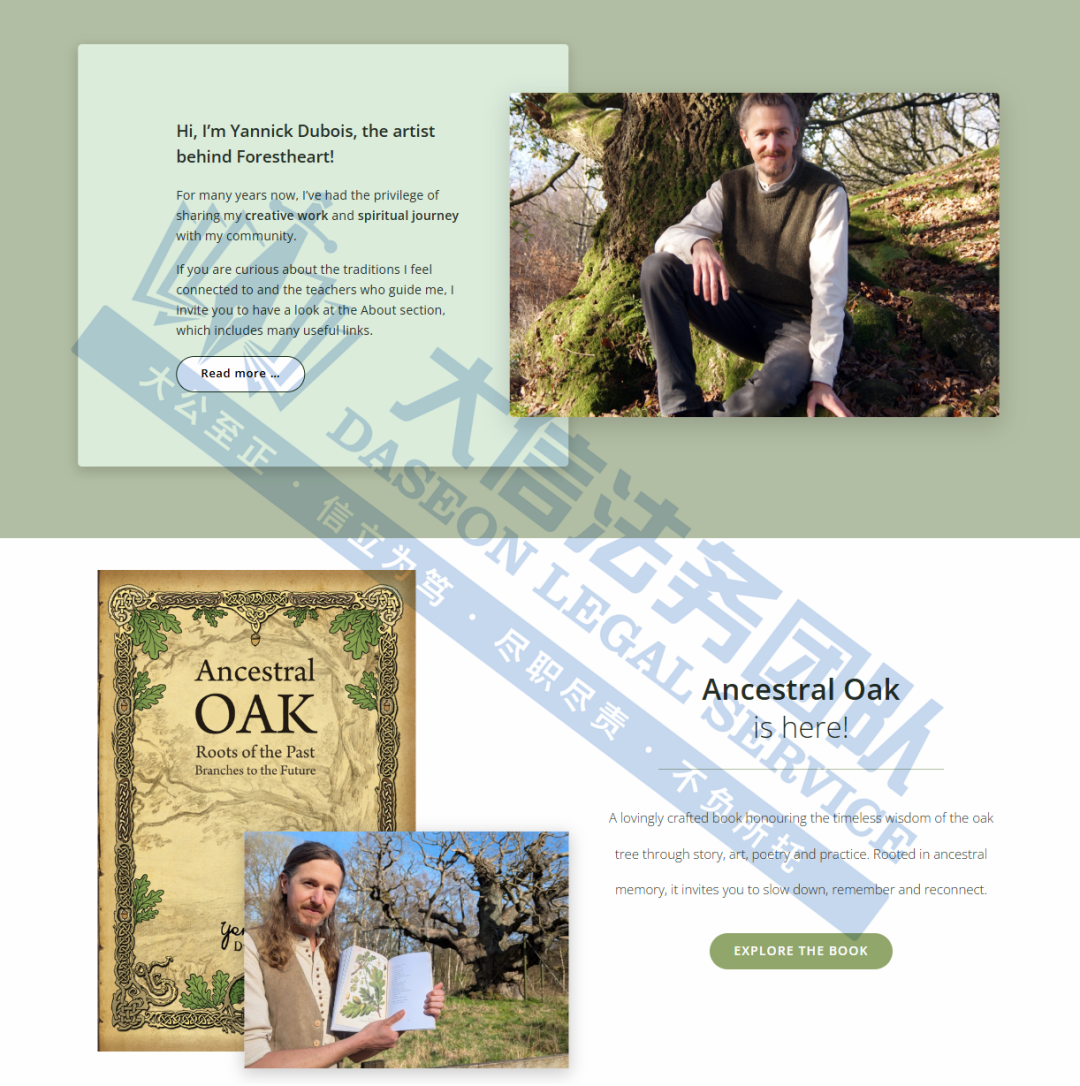 Yannick Dubois 是英国艺术家、现代德鲁伊与森林学校导师,以Forestheart艺术项目,用视觉艺术具象化自然精神。作品深受德鲁伊信仰与自然灵性启发,以Tree Wisdom系列闻名,视创作为与树灵对话。代表作含生命之树、Ogham 树木字母卡片、祭坛布、凯尔特年度之轮等。他开设视觉工作坊,教人以艺术联结自然,并推出沉浸式叙事游戏《Rivers of Awen》,引导体验铁器时代生活,践行与自然共生的理念。