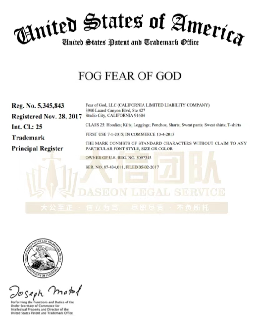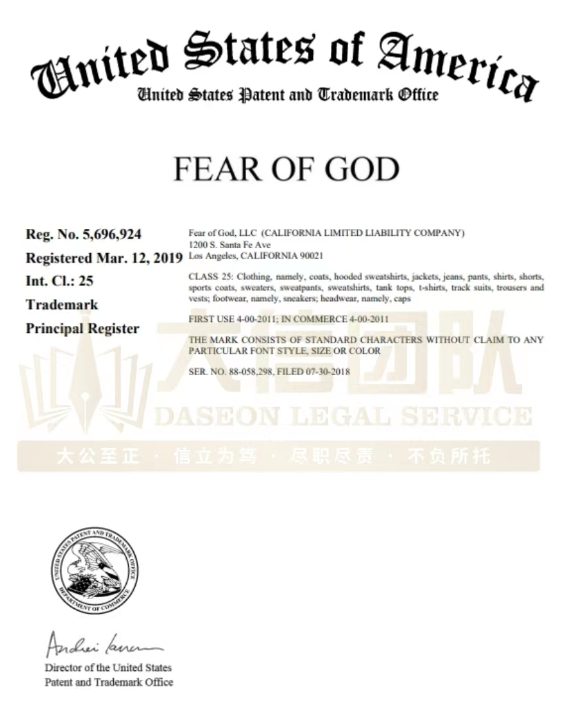 Fear of God潮牌商标维权