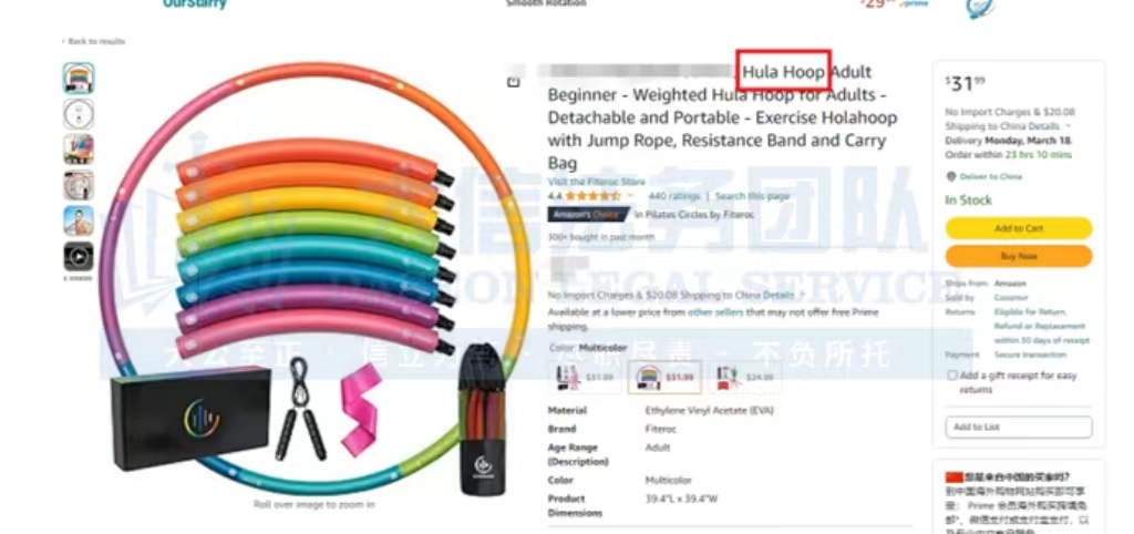 Wham-O Holding公司在1962年就将HULA-HOOP申请注册为商标,近年来发起TRO的次数很频繁,卖家们未经授权切勿使用该商标,疑似侵权产品如下: