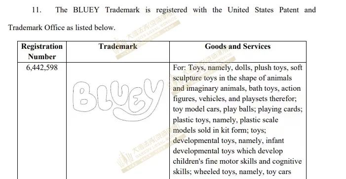 BLUEY 是其注册文字商标和卡通形象版权如下: