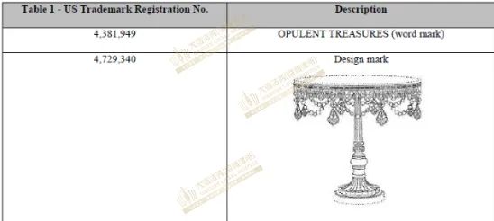 原告Opulent Treasures Inc.是一家加利福尼亚州的公司,成立于 1995 年.是一家领先的装饰制造商和分销商,在质量、可靠性和价值方面赢得了国际声誉。在创造华丽的宝藏产品时,原告的目标是为每个客户的特殊场合和庆祝活动增添魅力、优雅和令人惊叹的美丽。主要制造枝形吊灯蛋糕架、枝形吊灯纸杯蛋糕架、金属蛋糕架,以一种全新、独特和奢华的方式来展示和供应甜点。他们的产品经常被婚礼行业的杂志报道,包括 Wedding Chicks、Ruffled Blog、ModWedding、The Knot 和 Wedluxe!