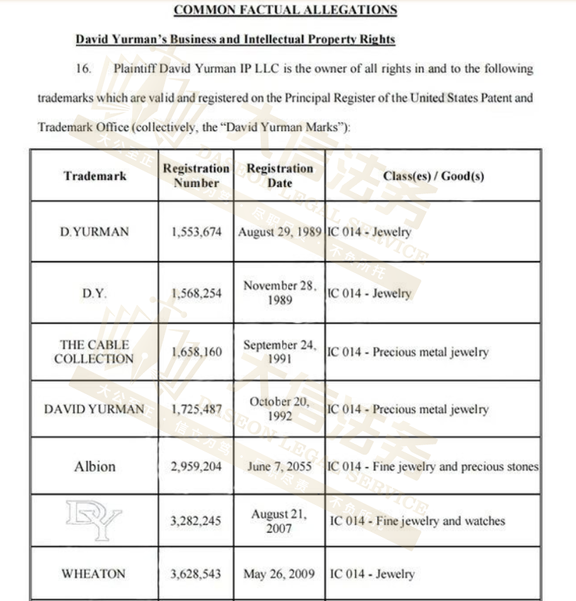 案例:David Yurman珠宝首饰商标维权起诉