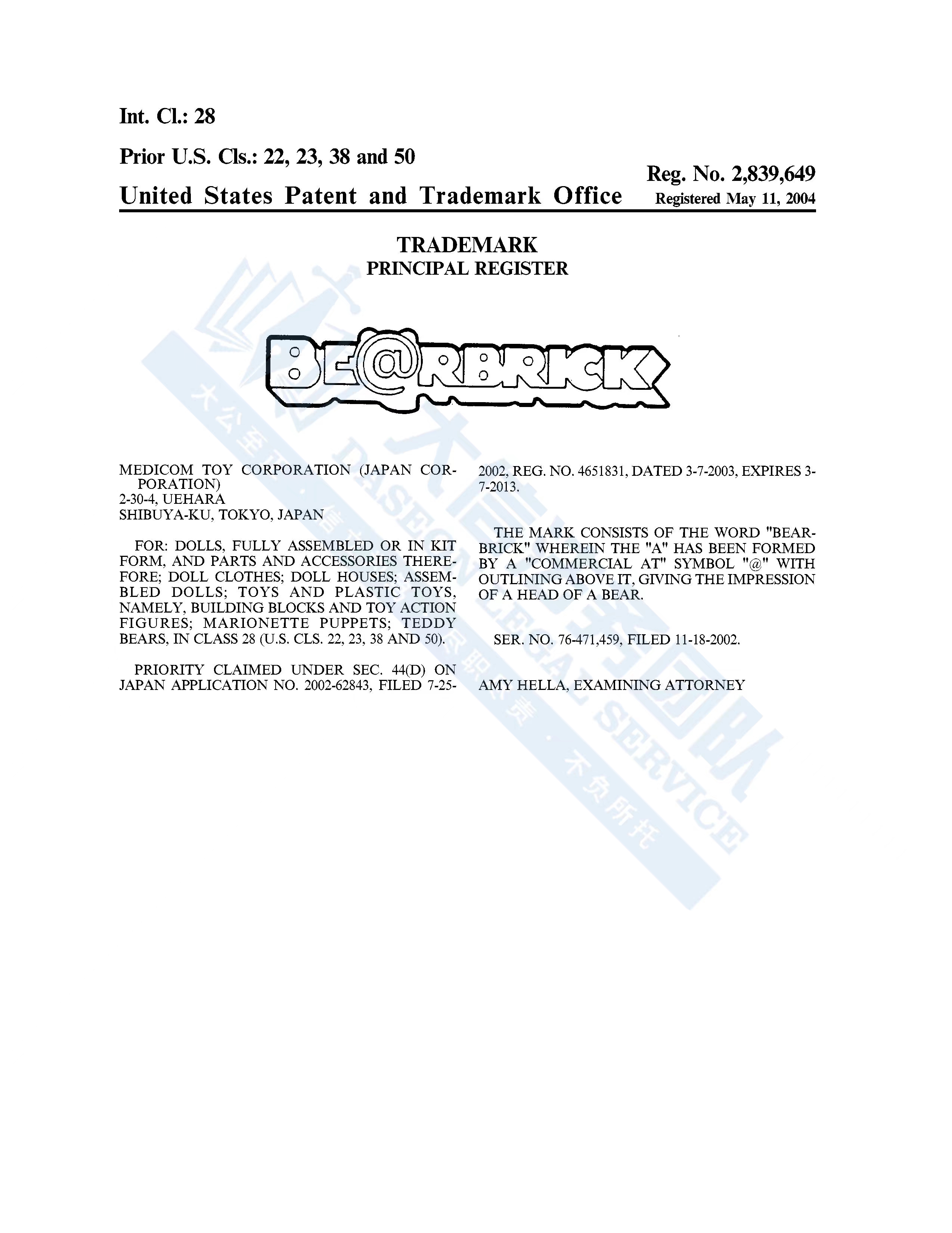 Bearbrick就是众人熟知的积木熊,由日本MEDICOM公司出产的一款玩具,2001年8月正式推出,到2009年,第18代已经推出。大陆由PPW公司代理。昵称:Bearbrick,be@rbrick,BB,积木熊,布里克小熊,百变布里克。