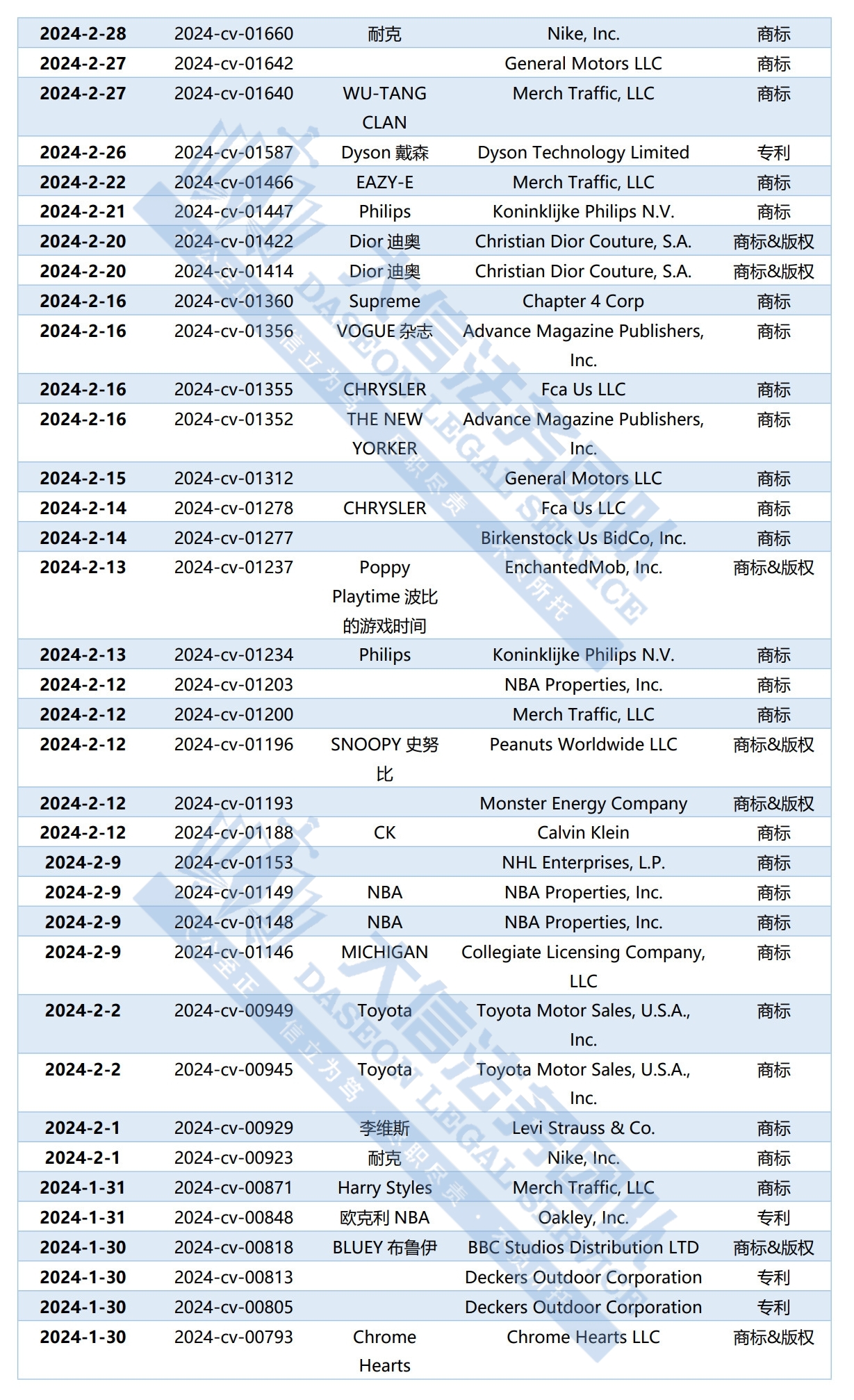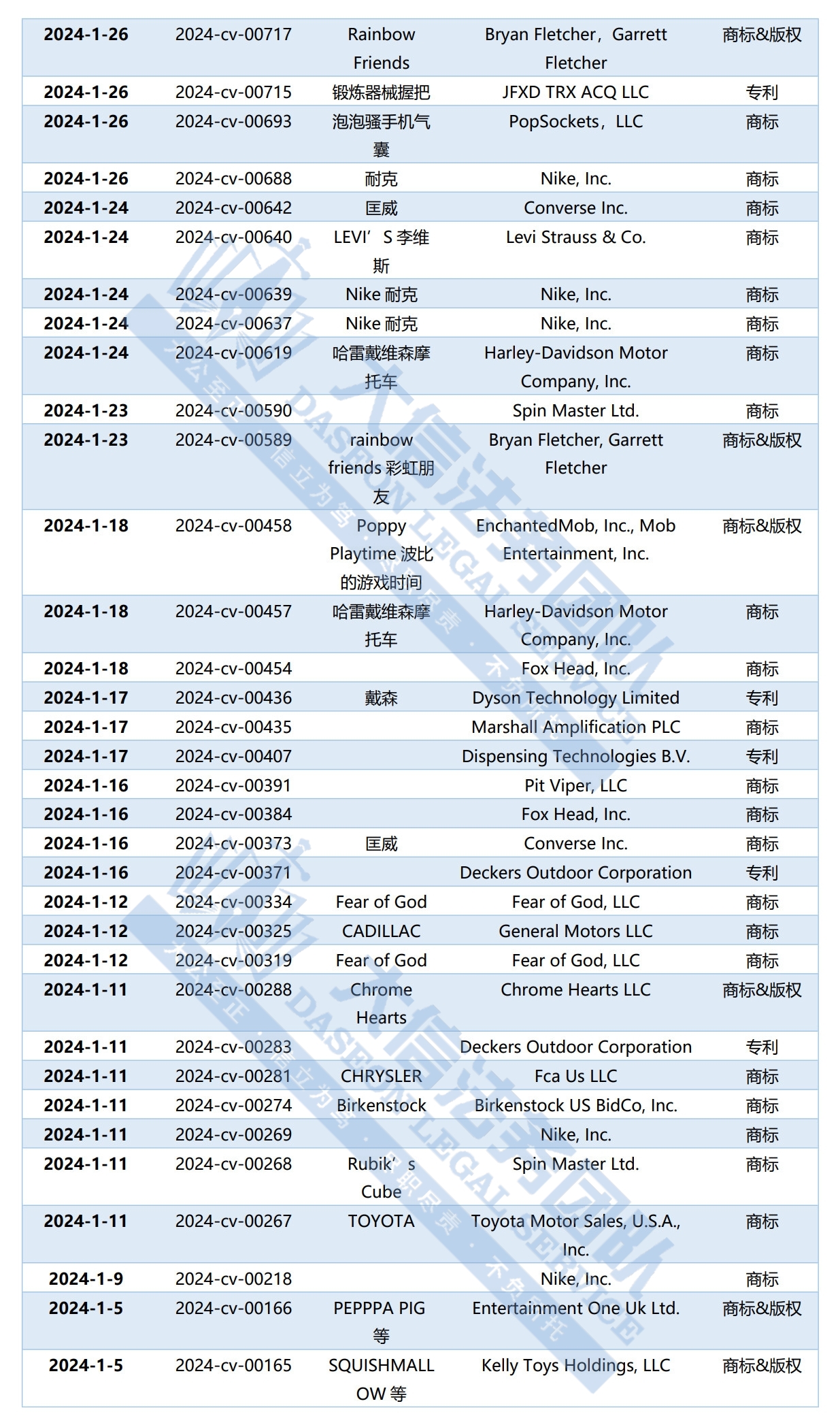 在TRO案件中,由GBC律所律所代理的案件占大头,特别是一些经常发案的知名品牌,例如Dyson戴森,Converse匡威,Nike耐克,poppy time波比游戏时间等。GBC作为最早一批代理TRO案件的律所,处理TRO案件的时间长,案件多,其合作的大部分原告都是反复发起TRO,因此,其代理的原告品牌对于卖家来说具有很大的参考意义。大信法务团队为卖家朋友们整理了2024年GBC代理的TRO案件汇总,以供卖家参考避雷。卖家们快收藏起来吧~