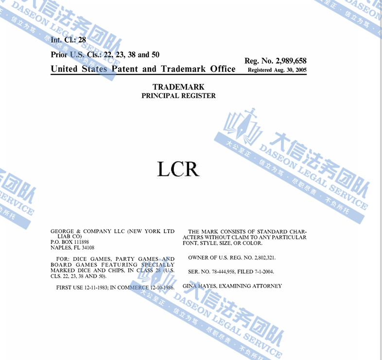 此次案件中,涉及到商标“LCR”,卖家在销售相关产品的时候,注意不要使用该品牌商标,避免侵权风险,以下是商标侵权的具体信息: