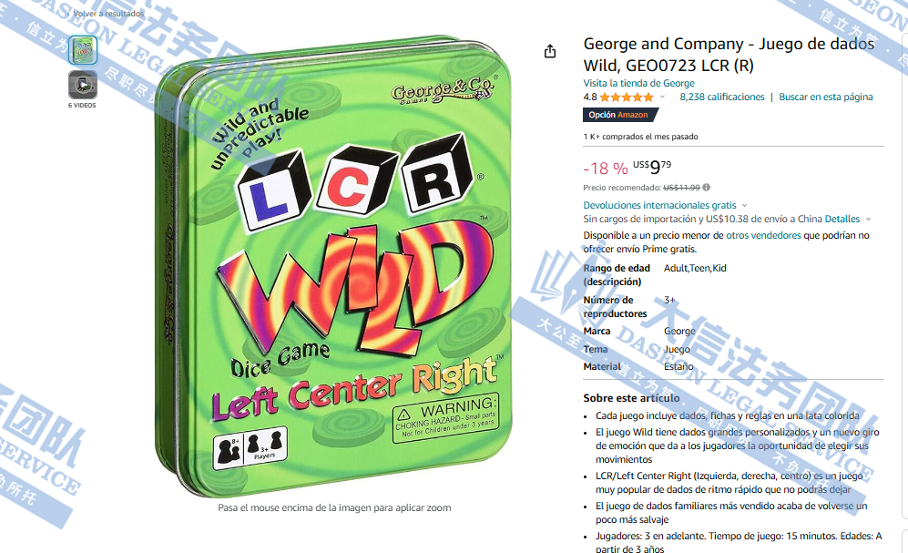 George & Company LLC是本案的原告,该公司是一家历史悠久,世界知名的游戏企业,该企业所研发的骰子游戏,风靡全球,深受广大玩家的喜爱。LCR骰子游戏还曾在多个知名节目和电视网中亮相,获得了业内杂志的肯定,被评为“十大最受欢迎的游戏”之一。