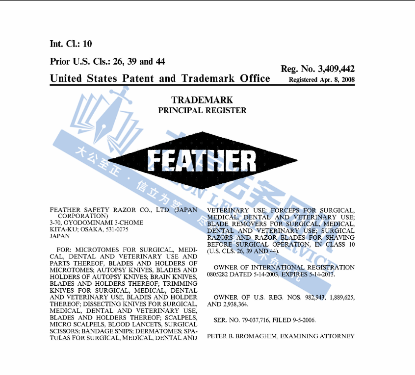 01 Feather 羽毛刮刀片商标维权 案件号:24-cv-03632 立案时间:2024年5月6日 原告:Japan America Trading Agency Inc. 代理律所:Rosenbaum & Segall, P.C. 原告介绍 原告Japan America Trading Agency Inc.是日本第一家高品质美容和理发师美容工具的独家经销商,自1932年以来,Feather 作为高质量日本国产品牌,不依赖海外生产,而是追求日本制造,每一款产品都具有独特的设计和功能,能满足不同用户的需求,其卓越性和耐用性得到了全球用户的高度评价和赞誉