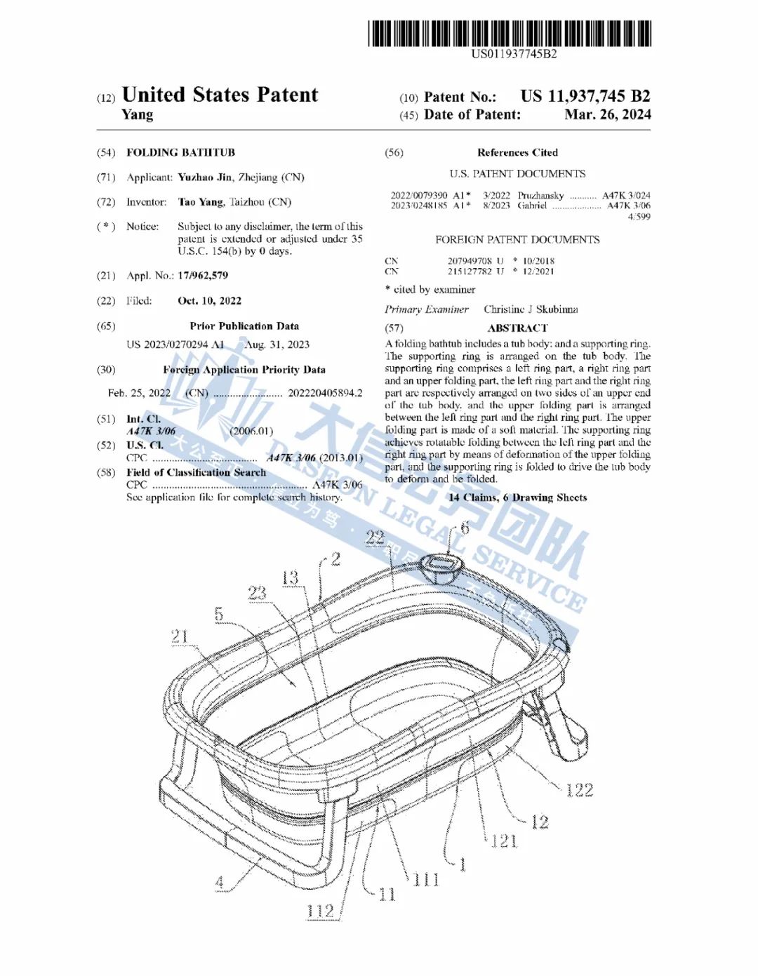 案件分析 此案涉及到发明专利,该专利保护一种可折叠浴盆的发明原理。以下是专利的详细信息,卖家需要注意即使产品外观不一样,发明原理类似也是有侵权风险的。相关卖家速速排查!
