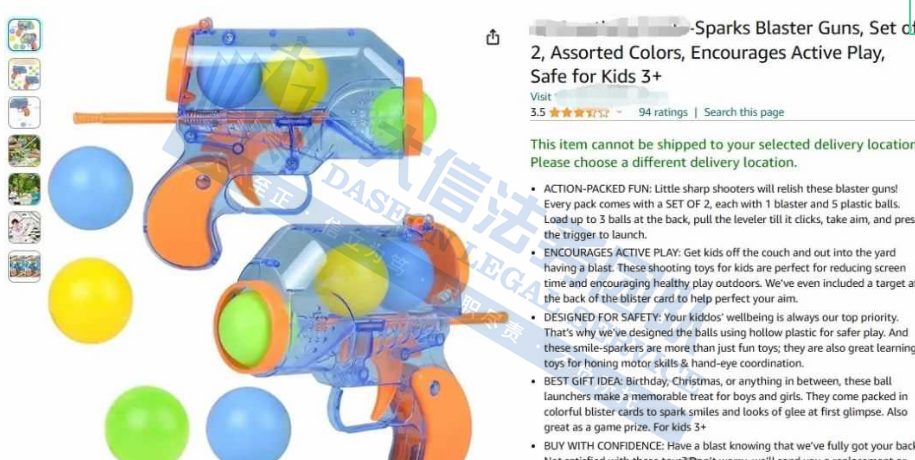 03 儿童玩具球枪专利维权 案件号:24-cv-04767 立案时间:2024年6月10日 原告:Along Ge 代理律所:Concord & Sage PC 原告介绍 原告是一位来自中国的创新卖家,其核心诉求围绕其精心设计的儿童球枪玩具外观专利展开,这一款ball gun球枪玩具,外观设计圆润可爱,采用了安全环保的ABS材料,它耐磨耐摔,品质卓越,玩法简单有趣,只需将小球装入后部的储物盒,轻轻一拉手柄,再按下按钮,就能享受发射的乐趣。这款专利产品以其独特的圆形萌趣造型赢得了孩子们的广泛喜爱,尤其适合低龄儿童。
