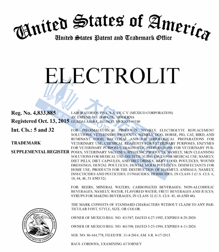 03 ELECTROLIT 电解质饮料商标维权 案件号:24-cv-02527、24-cv-01689 立案时间:2024年7月3日 原告:CAB Enterprises, Inc. 代理律所:Alston & Bird 原告介绍 原告Grupo Pisa是一家成立于1945年的墨西哥制药公司。1950年公司推出了Electrolit电解质饮料品牌,每份 Electrolit 包装在矩形瓶中,含有 326 毫克电解质和真正的葡萄糖,这是一种天然能量来源,有助于身体从脱水中恢复。Electrolit拥有多种口味选择,包括柠檬、橙子、草莓和芒果等,以满足不同消费者的需求。