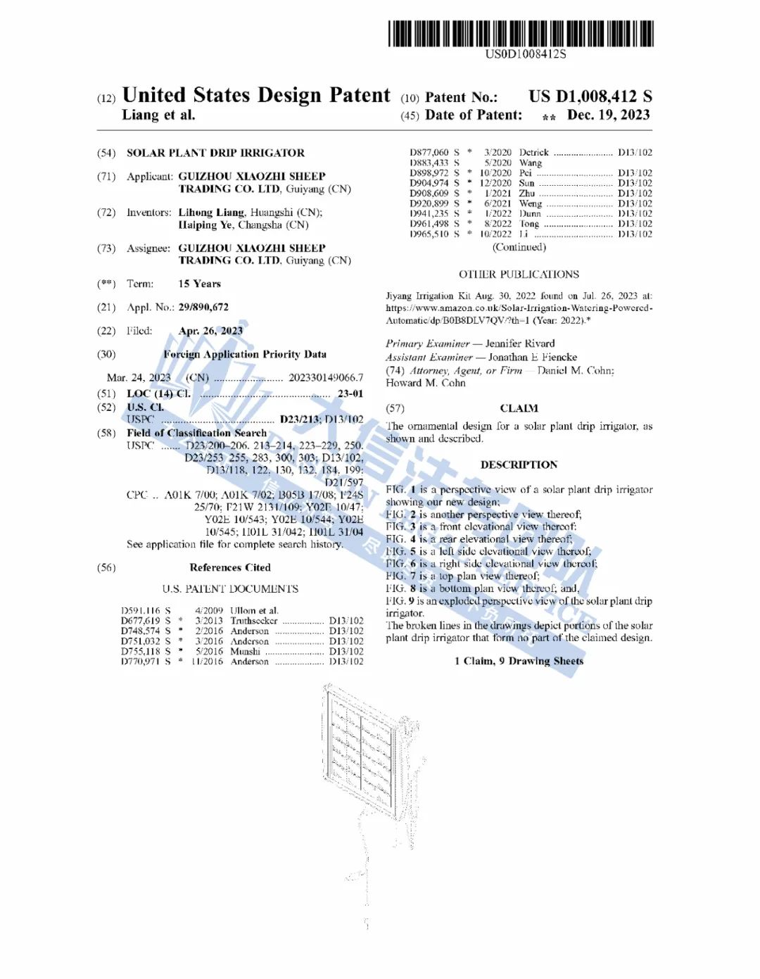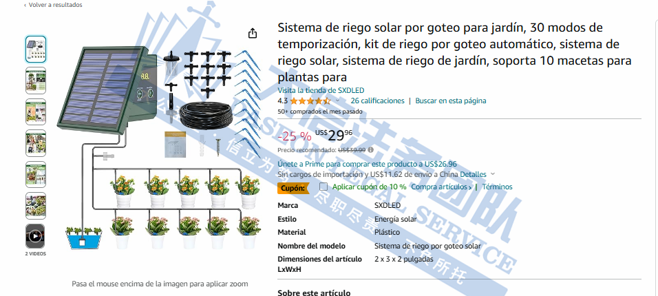 太阳能滴灌机专利维权 案件号:24-cv-04765 立案时间:2024年6月10日 原告:GuizhouXiaozhi Sheep Trading Co.Ltd, 代理律所:Concord & Sage PC 原告介绍 原告GuizhouXiaozhi Sheep Trading Co., Ltd.的太阳能智能植物灌溉系统,是一款不需要水龙头便可以直接从水桶等容器中取水的植物浇灌装置。太阳能智能植物灌溉系统完全依赖太阳能供电,在没有水龙头和固定电源的情况下也能自动完成植物灌溉,更加便捷,应用范围更广。适用于草坪灌溉、露台、花园、蔬菜灌溉、温室等场所的植物自动浇水。