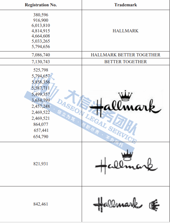 02 HALLMARK 贺曼商标版权维权 案件号:24-cv-05990 立案时间:2024年7月16日 原告:Hallmark Licensing, LLC 代理律所:GBC 原告介绍 原告Hallmark由青少年企业家J.C. Hall于1910年创立,总部位于密苏里州堪萨斯城,拥有多元化的业务组合。是一家拥有家庭成员的私人公司,其业务在全球拥有员工超过20000名。主要生产和销售贺卡、礼品包装、文具、服装、寝具、化妆品等相关用品。销售至全球上百个国家。贺曼的精美礼品不仅在全球成千上万的实体店中熠熠生辉,更通过hallmark.com这一便捷的在线平台,触达全球消费者的心。其出版物以多达30种语言呈现,跨越国界,让爱与祝福在100多个国家传递。 官网:https://www.hallmark.com/