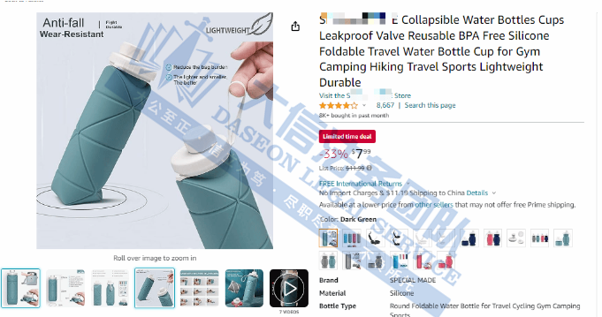 案件分析 此按涉及的是专利维权,共涉及两个外观专利,这是BSF24年代理Origami Bottle折叠水杯的第三次维权,未经授权,相关卖家切勿使用,侵权风险极高!