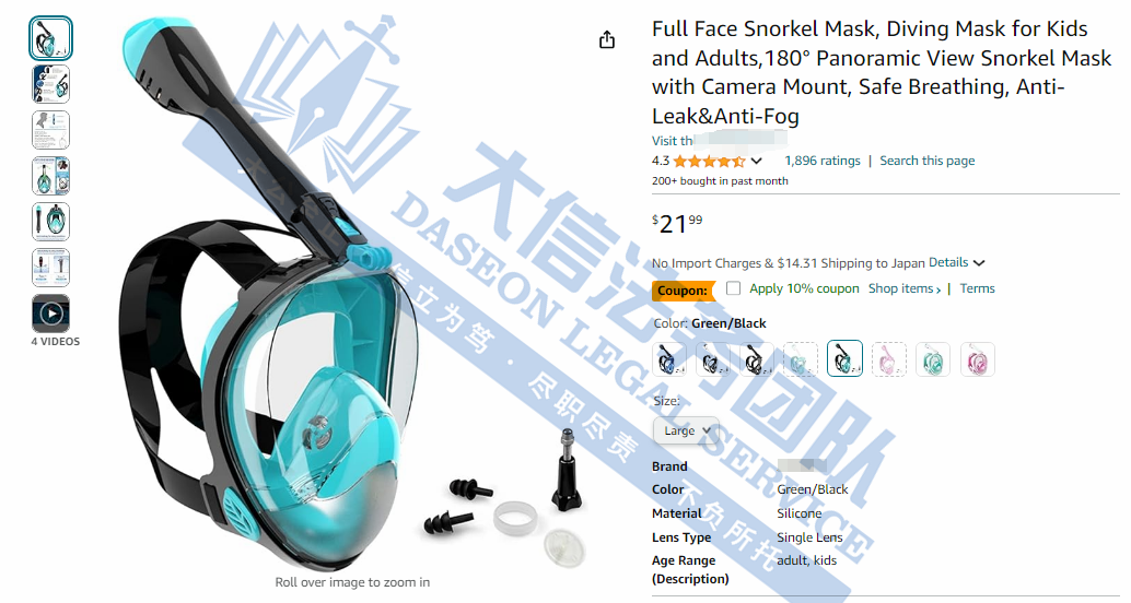 DIVING MASK 潜水面罩专利维权 案件号:24-cv-05505 立案时间:2024年6月28日 原告:Shenzhen Xinsenlin Technology Co., Ltd. 代理律所:Bishop Diehl & Lee, Ltd. 原告介绍 原告是一位国人卖家,位于广东省深圳市,公司主要是是集硅胶按键、硅胶杂件、导电硅胶、橡胶等各类制品以及各种工艺的塑胶外壳,TPU外壳,双色注塑工艺等为一体的专业产品服务提供商。其产品主要用于电子,家电,机械,玩具,医疗保健,家庭用品等行业。DIVING MASK 潜水面罩是旗下一款专利产品,这是一种专为潜水设计的设备,保护眼睛和鼻子的同时提供清晰视野。
