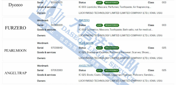 03 Luckymogo公司商标维权 案件号:24-cv-06107 立案时间:2024年7月19日 原告:Luckymogo Technology Limited, Ltd. 代理律所:Whitewood Law PLLC 原告介绍 原告Luckymogo Technology Limited, Ltd. 是一家在跨境电商及科技创新领域具有竞争力的公司,在多个领域均有涉足,包括但不限于科技创新、企业运营服务以及产品设计与销售。其业务范围广泛,涵盖了消费者所关注的多个类目,如服装鞋帽、生活周边用品、美妆产品、数码家电、运动户外、珠宝首饰、食品饮料等。还凭借其丰富的产品线、广泛的品牌覆盖以及卓越的市场运营能力,在跨境电商市场中占据了重要地位。