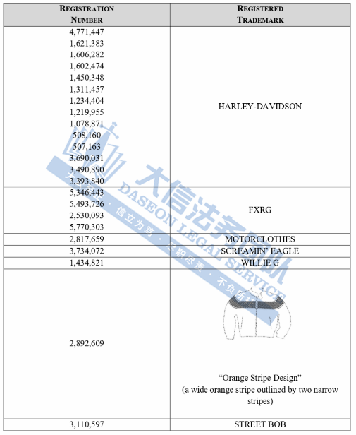 02 Harley-Davidson哈雷戴维森商标维权 案件号:24-cv-06658 立案时间:2024年7月30日 原告:Harley-Davidson Motor Company, Inc. 代理律所:GBC 原告介绍 原告Harley-Davidson,自1903年由William Harley与Davidson兄弟创立以来,已从一个简陋的小木屋发展成为全球重型摩托车领域的标志性品牌。其产品线覆盖Touring、Softail®、Dyna®、Sportster®等多个系列,不仅限于摩托车本身,还延伸至零配件、服装、附件等多元化领域,深受全球机车爱好者的追捧与信赖。除了生产摩托车,哈雷·戴维森还经营相关的服装、配件和骑行装备,并通过组织各种骑行活动和俱乐部,进一步推动骑行文化的发展和传播。 官网:www.harley-davidson.com