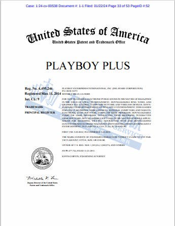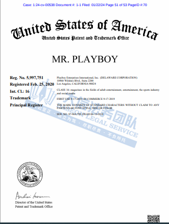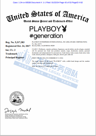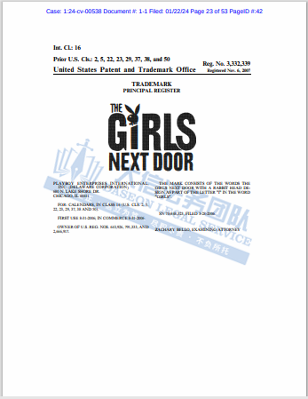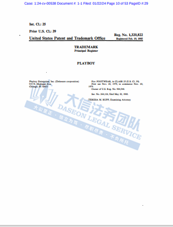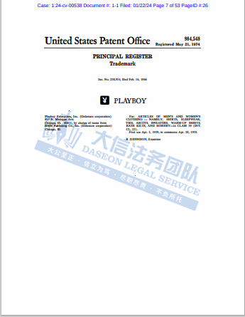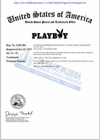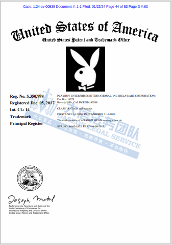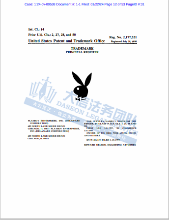 Playboy 花花公子商标维权 案件号:24-cv-06770 立案时间:2024年8月1日 原告:Playboy Enterprises International, Inc. 代理律所:keith 原告介绍 原告花花公子Playboy创立于1953年,是美国纽约股票交易所上市的媒体集团企业,旗下业务广泛,涵盖了娱乐、服饰、传媒等多个领域。Playboy从最初的杂志出版业务,逐渐扩展到电视、电影、化妆品、箱包、服饰等多个领域,形成了一个集出版、影音、娱乐和服装为一体的大型集团。其独特的品牌魅力在于将现代时尚元素巧妙融入传统经典之中,传递出一种绅士休闲的生活态度。