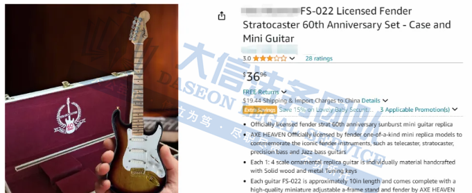 02 FENDER 乐器商标维权 案件号:24-cv-22963 立案时间:2024年8月2日 原告:Fender Musical Instruments Corporation 代理律所:BSF 原告介绍 原告Fender Musical Instruments Corporation是一家享誉全球的乐器制造公司,简称Fender公司,1946年在美国成立,专注于弦乐器和音箱,如电吉他、声学吉他等产品的生产。该公司持续通过改进技术和设计,引领乐器行业的发展。Fender 的产品在全球范围内广泛使用,无论是在录音室、舞台表演,还是家庭练习中,Fender 的乐器和设备都占据了重要的位置。 官网:https://www.fender.com/