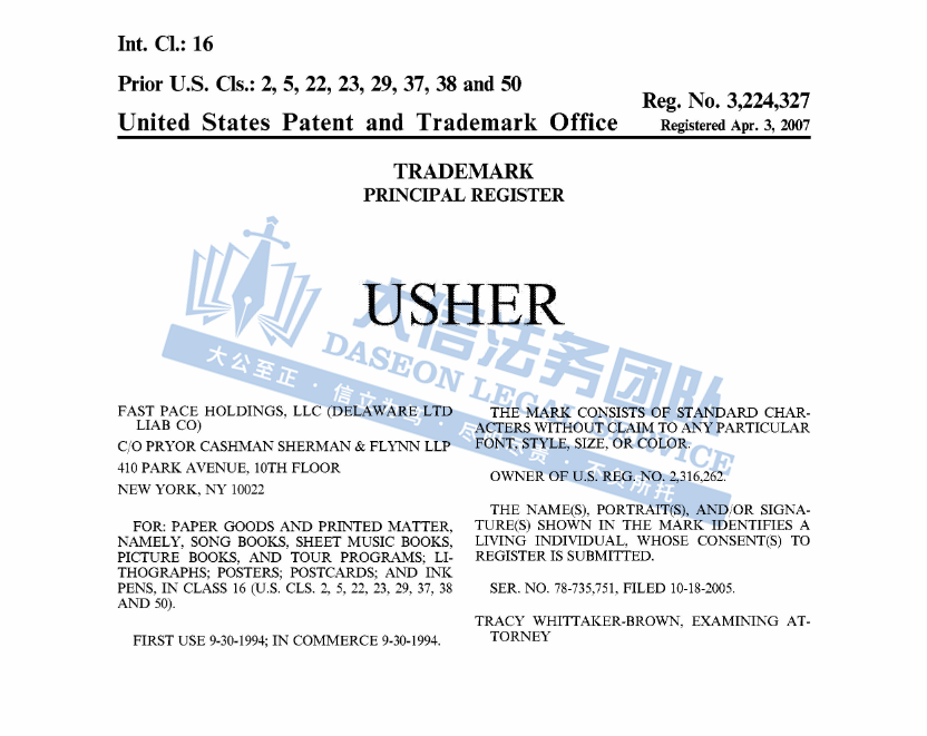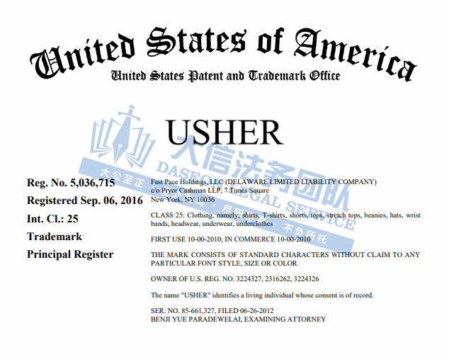 Usher 亚瑟小子商标维权