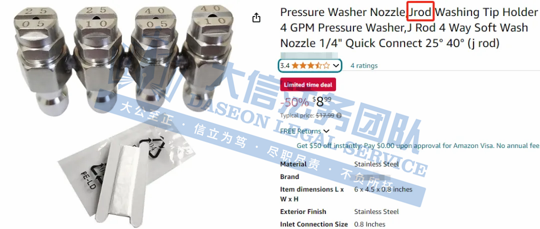 高压水枪产品Jrod商标维权