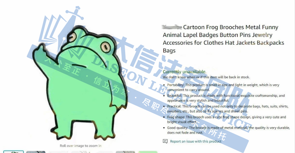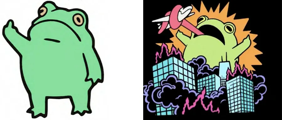 案件分析 此次维权的是两张版权画,分别为“Frick Frog”和“Kaiju Frog”,相关卖家注意对照下架,侵权风险极高!