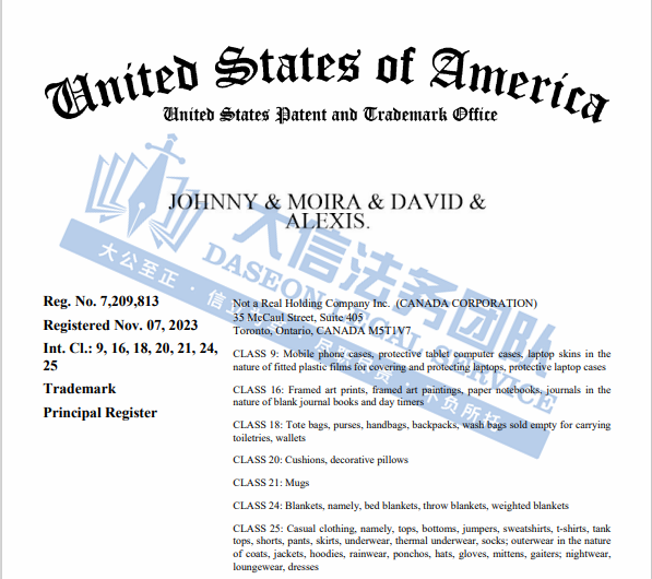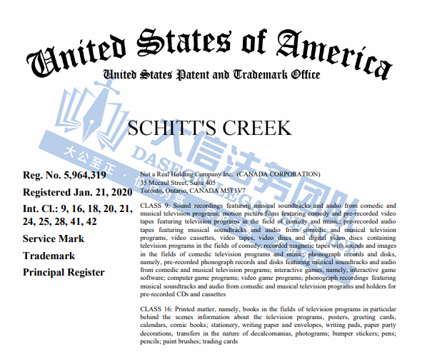 Schitt’s Creek 穷家富路商标+版权维权 案件号:24-cv-08277 立案时间:2024年9月11日 原告:Not a Real Holding Company Inc. 代理律所:Aronberg Goldgehn 原告介绍 原告《Schitt's Creek》穷家富路 是一部加拿大情景喜剧,由Eugene Levy和他的儿子Dan Levy共同创作。该剧讲述了富豪Rose一家因商业失败而破产,被迫搬到他们曾经购买作为笑话的一个小镇Schitt's Creek生活的故事。这部剧以其幽默和温情,赢得了广泛的观众和评论界的赞誉。 官网:https://schittscreek.shop/